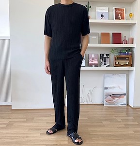 멀티 플리츠 반팔 티 바지 세트