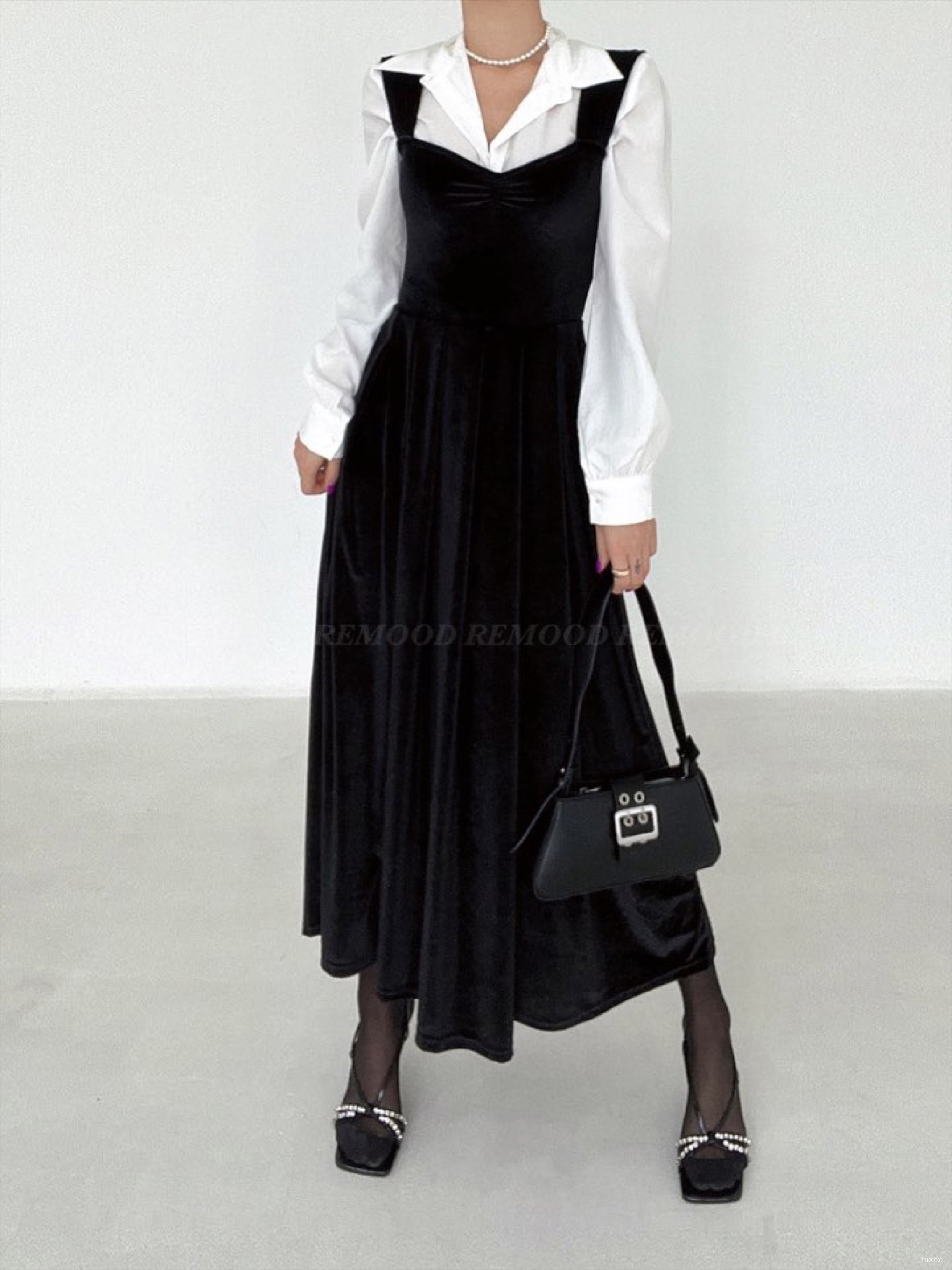 벨벳 주름 롱원피스