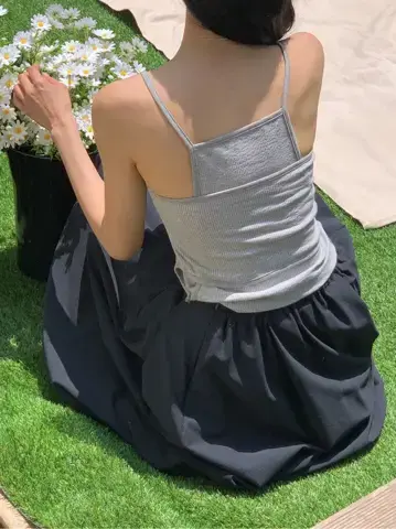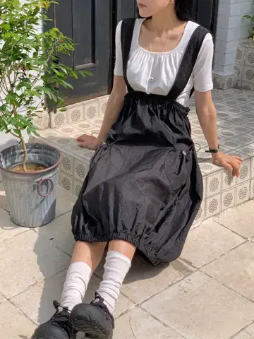 테일 벌룬 멜빵 원피스