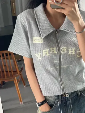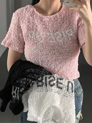 업 팝콘 크롭 반팔 티셔츠