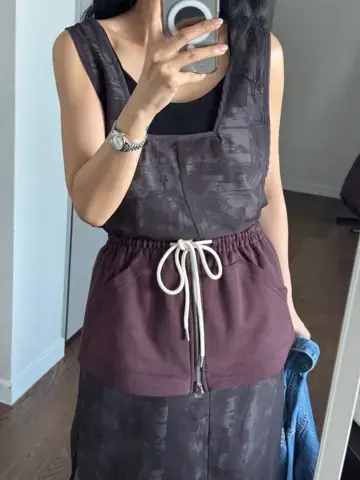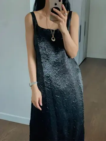 룩스 물결 새틴 민소매 원피스