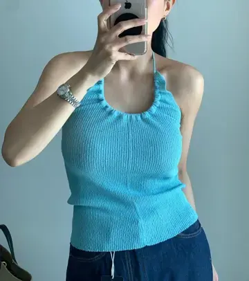 라벨 썸머 홀터넥 니트