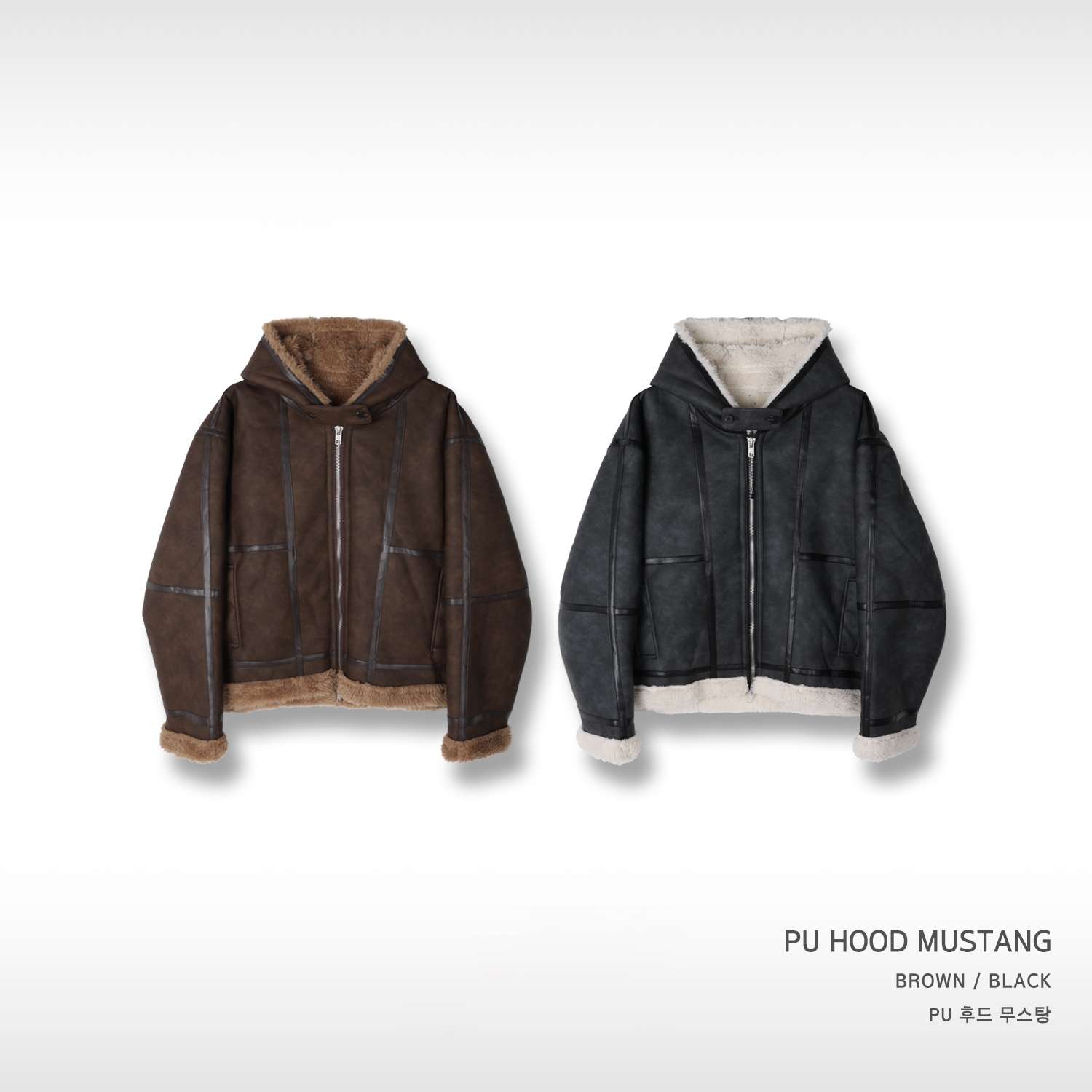PU 후드 무스탕